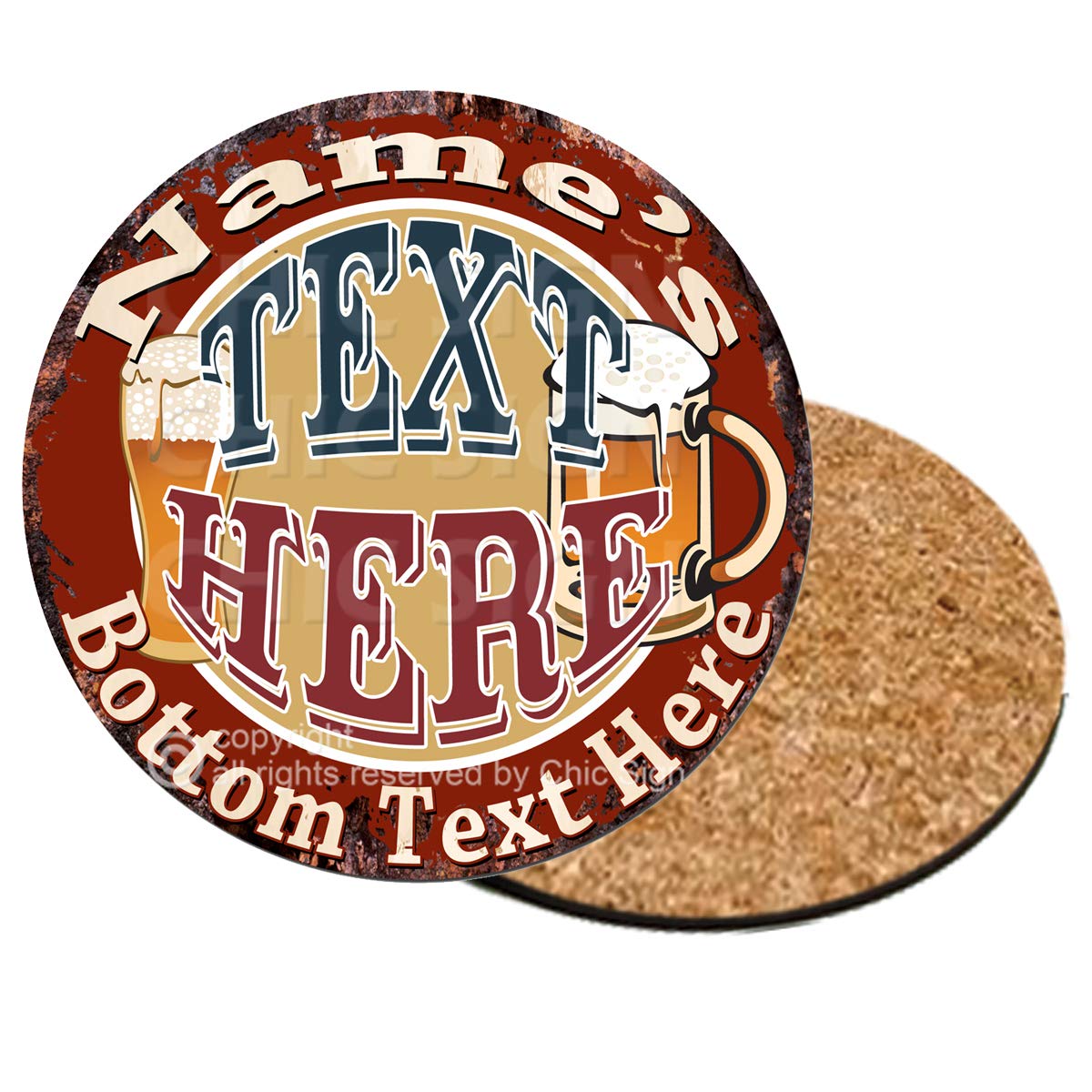 Title : Any Name's Your Text Here Custom Personalized Chic Tin Sign Rustic Shabby Vintage Style Retro Kitchen Beer Garage Bar Pub Coffee Shop Man cave Decor Gift Ideas (Maroon, 3.75 inch Coaster (6 of Set))